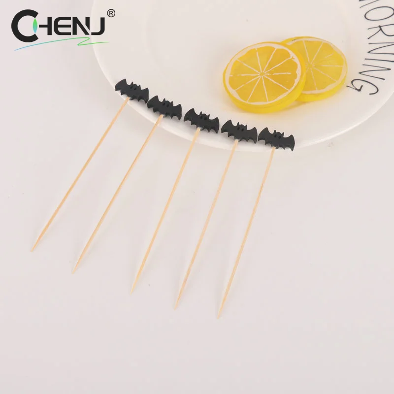 100 pezzi pipistrello ragni zucca stuzzicadenti legno appetitizzatore spiedini bastoncini cibo piccone per Halloween festa cibo frutta