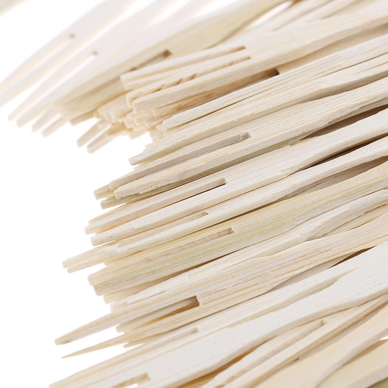 100 pz usa e getta 9cm lunghezza forchette di bambù forchette di frutta Cocktail frutta Picks spiedini bastoncini naturali utensile da Dessert per feste