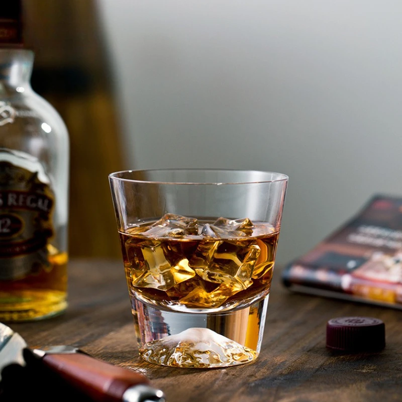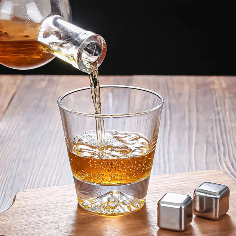 2pcs Sets Japanese Style Mount Fuji Glass Cup Snow Mountain Cup Snowflake Pattern Cocktail Glass Exquisite Foreign Wine Glass