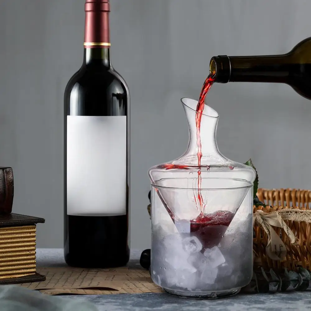 1. Sistema di raffreddamento efficiente: la struttura conica del secchiello del ghiaccio garantisce un raffreddamento uniforme del vino rosso, mentre il design di deviazione obliqua migliora l'efficienza di decantazione, per un'esperienza di servizio raffinata senza diluizione